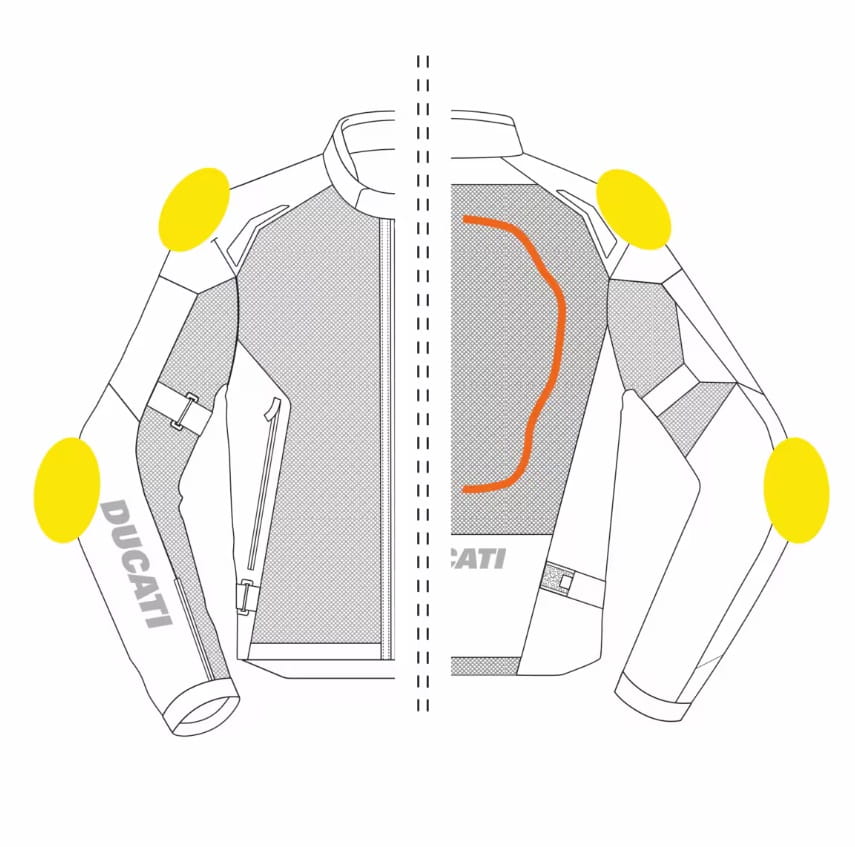 Ducati Speed Air C2 to idealna kurtka motocyklowa na ciepłe dni! Wykonana z wytrzymałych, przewiewnych materiałów, zapewnia doskonałą cyrkulację powietrza, gwarantując komfort nawet w upalne dni. Certyfikowane ochraniacze na ramionach i łokciach dbają o Twoje bezpieczeństwo, a sportowy design podkreśla dynamiczny charakter Ducati. Perfekcyjny wybór dla motocyklistów ceniących wygodę i ochronę w najlepszym stylu!