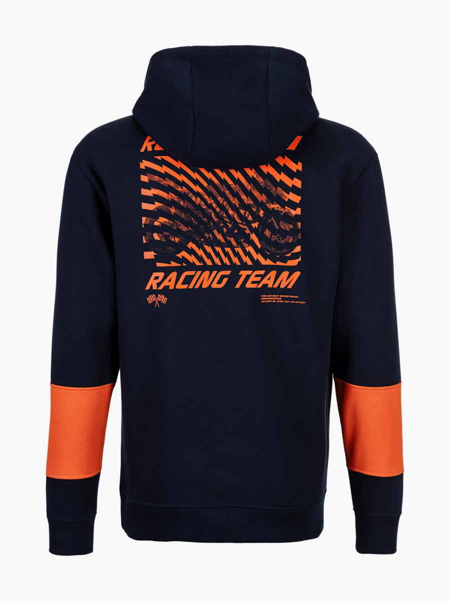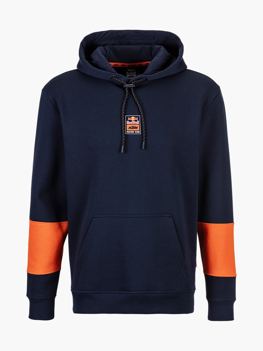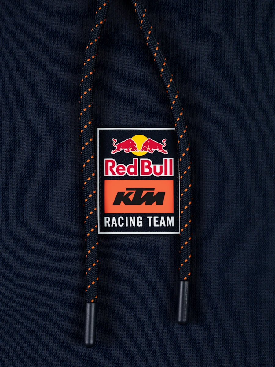Pokaż swoje wsparcie dla zespołu RED BULL KTM Racing z wyjątkową bluzą z kapturem w kolorze granatowym z pomarańczowymi detalami! Klasyczny krój, wygodny kaptur i subtelne logo to idealne połączenie komfortu i sportowego stylu. Wykonana z wysokiej jakości materiałów, świetnie sprawdzi się zarówno na torze, jak i na co dzień.