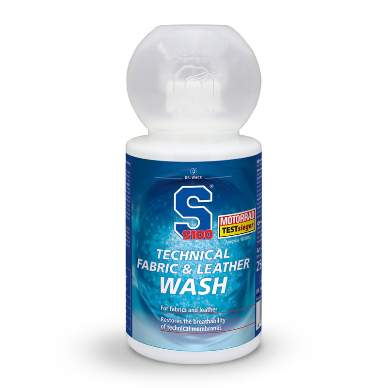 Twoja odzież motocyklowa zasługuje na profesjonalną pielęgnację! S100 Technical Fabric & Leather to specjalistyczny środek do prania tekstyliów i skóry, który skutecznie usuwa brud, pot i zapachy, jednocześnie zachowując właściwości oddychające i wodoodporne materiałów. Idealny do kurtek, spodni, rękawic i kombinezonów – nie niszczy membran i dba o ich długowieczność.