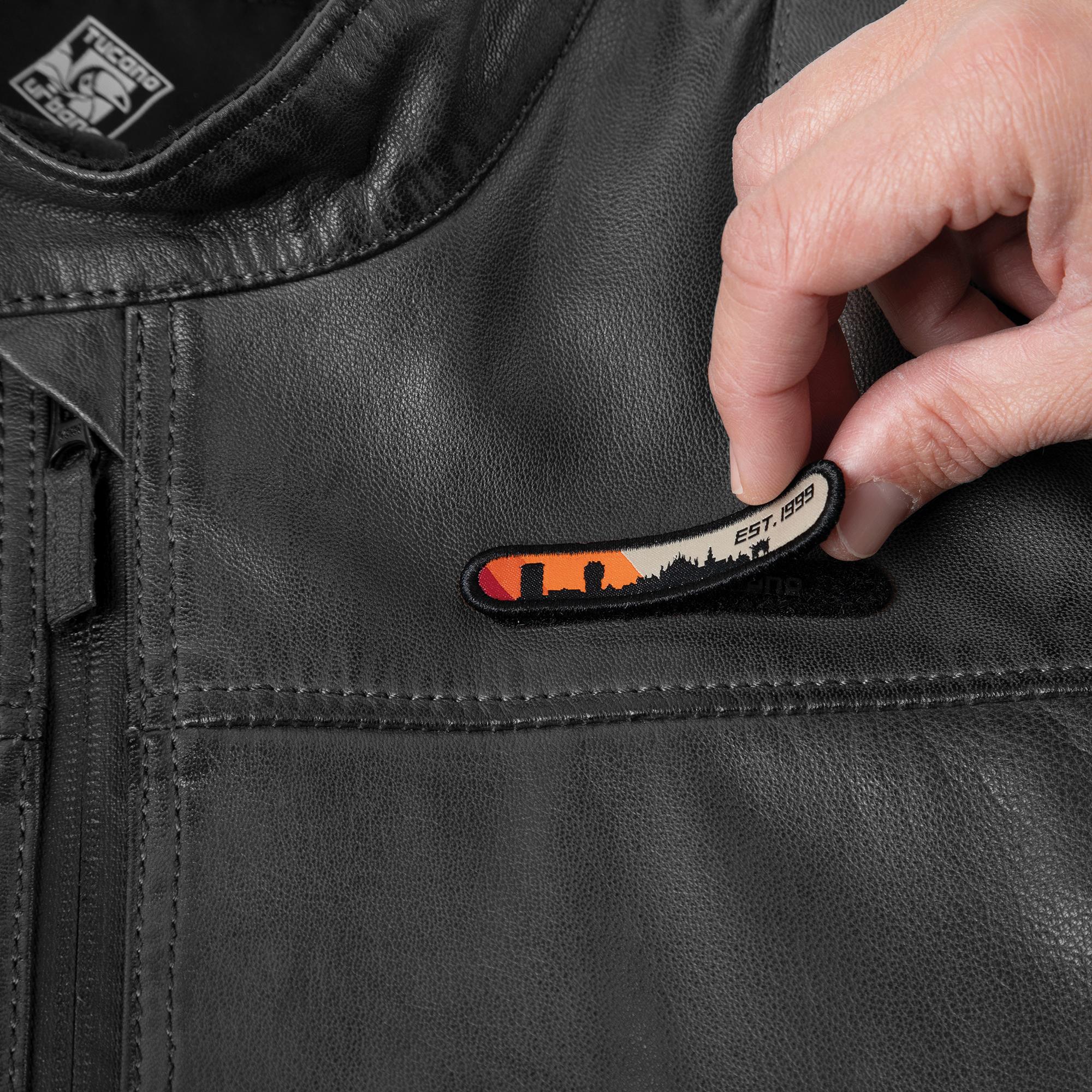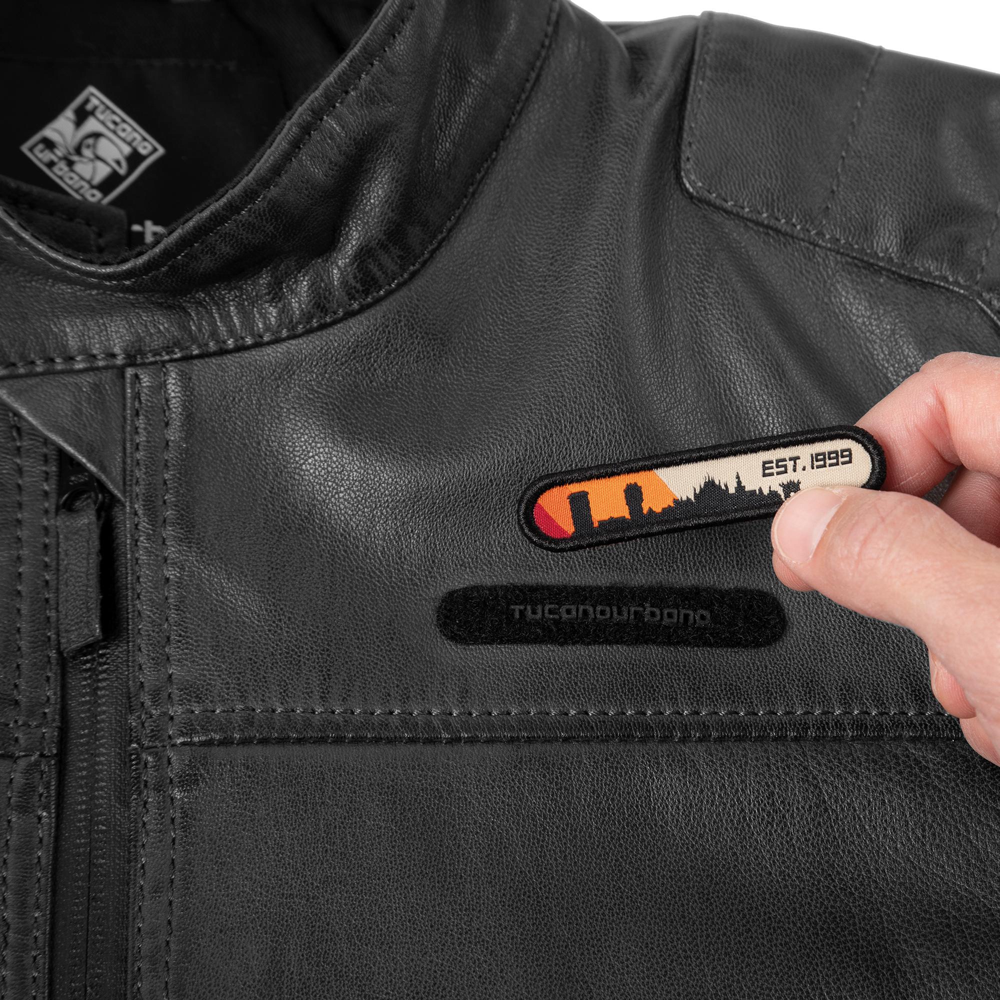 - Etykieta na rzep Tucano Urbano, którą można dostosować za pomocą dwóch wymiennych naszywek znajdujących się w zestawie.